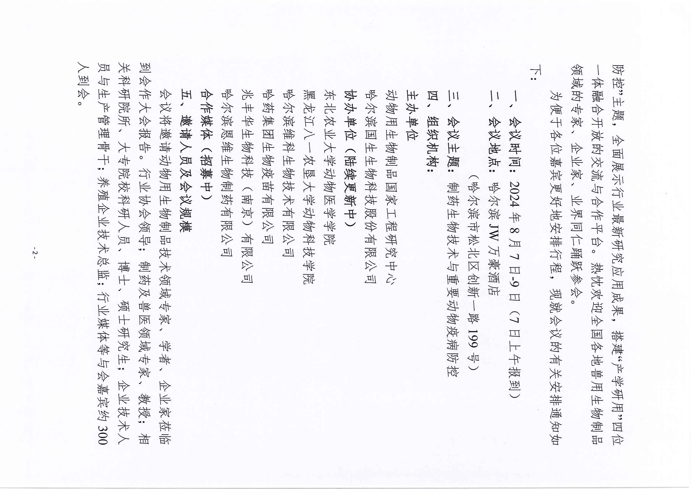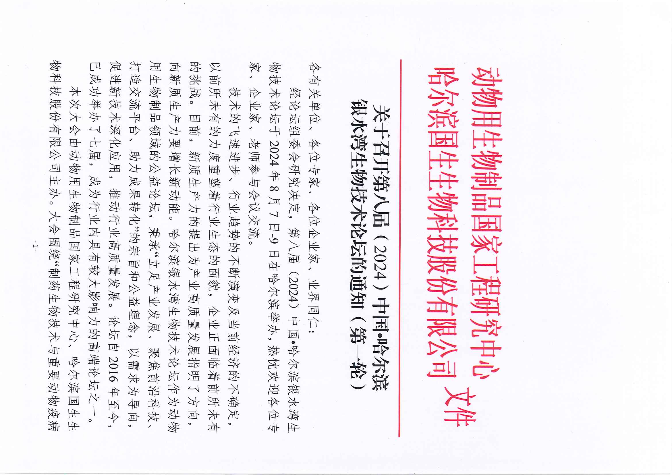 新聞動態 通知公告 人才招聘 銀水灣論壇 關于召開第八屆(2024)中國·哈爾濱銀水灣生物技術論壇的通知(第一輪) 上一條:第八屆(2024)中國·哈爾濱銀水灣生物技術論壇(第二輪通知) 下一條:動物用生物制品國家工程研究中心、哈獸研禽免疫抑制病創新團隊、福建圣農集團圣澤生物及福建圣農集團技術中心黨支部共建活動 返回上頁