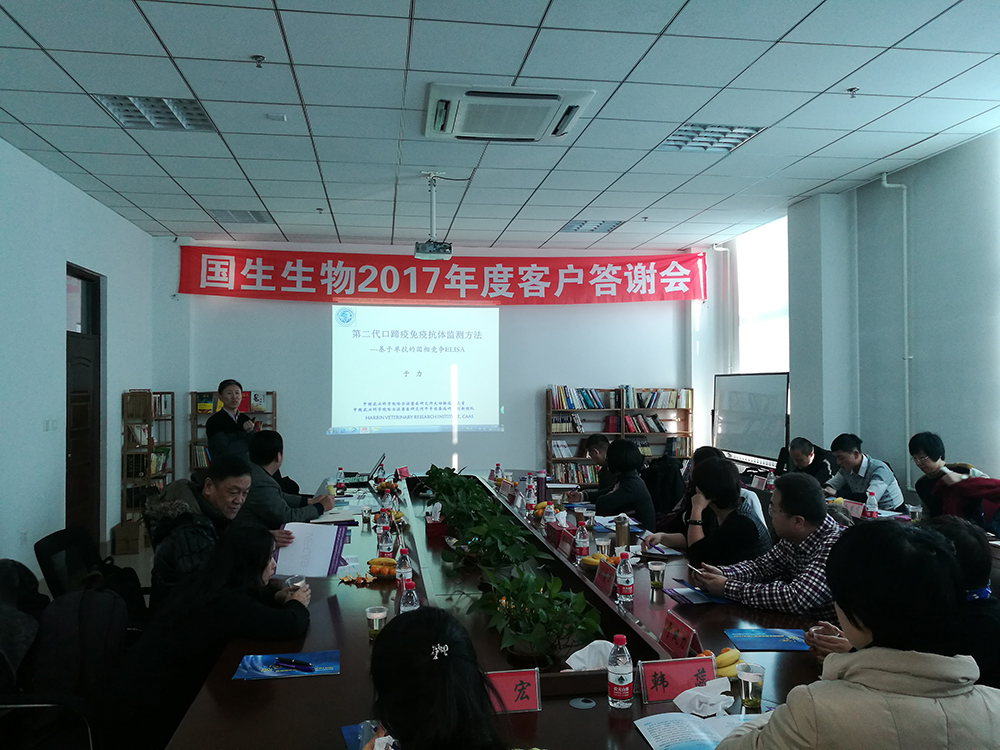 孫曄總經理在歡迎詞中回顧了公司2017年的發展變化,展望了公司的美好未來。2017年國生生物診斷制品業務板塊銷售額實現歷史性突破,首次達到千萬級,實現銷售收入1500萬元。成績的取得離不開哈獸研專家團隊及各省合作伙伴的鼎力支持,國生未來也將與各位合作伙伴共生共濟、實現雙贏。